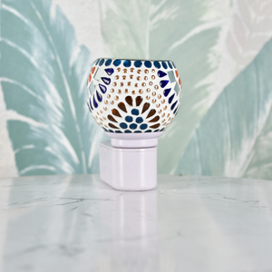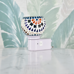 Enhance your ambiance with this beautiful electric camphor lamp, featuring a vibrant mosaic design. Ideal as a plug-in fragrance diffuser for essential oils and camphor, bringing a touch of home decor elegance to any room.