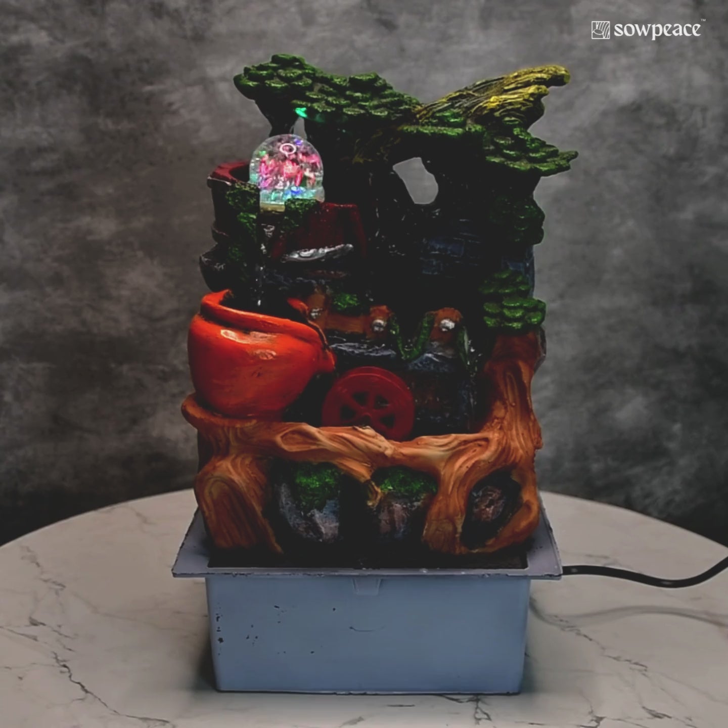 Enhance your living space with the Sowpeace Mystic Cascade Enchantment Fountain, a mesmerizing decorative water fountain designed to bring peace and beauty. Handcrafted using resin art products, this indoor water fountain is a perfect resin showpiece for any setting. The cascading water adds charm to any living room water fountain for home, creating a relaxing environment. Ideal as a Buddha water fountain or a water fountain for home indoor, it transforms any space into a serene retreat. Whether placed as a garden water fountain or as part of your resin decor, it exudes tranquility. Elevate your resin home decor collection with this stunning resin products creation, a true welcome home decoration masterpiece.