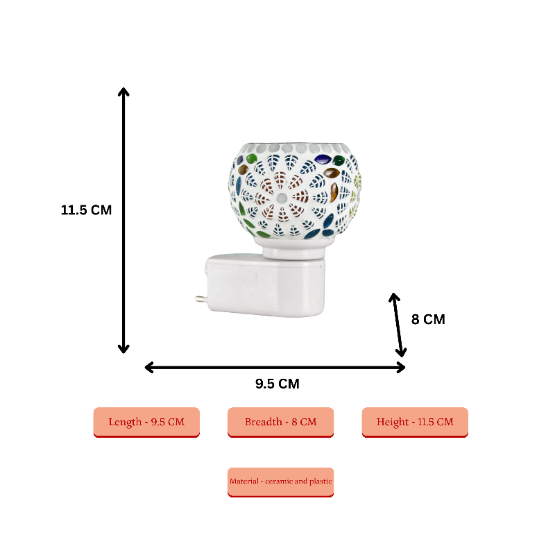 Illuminate your space with the Sowpeace Electric Camphor Lamp, a beautiful mosaic fragrance lamp perfect for essential oils and camphor. This shock-proof, power-saving wall plug-in diffuser is an ideal electric lamp for pooja room and general home decor.