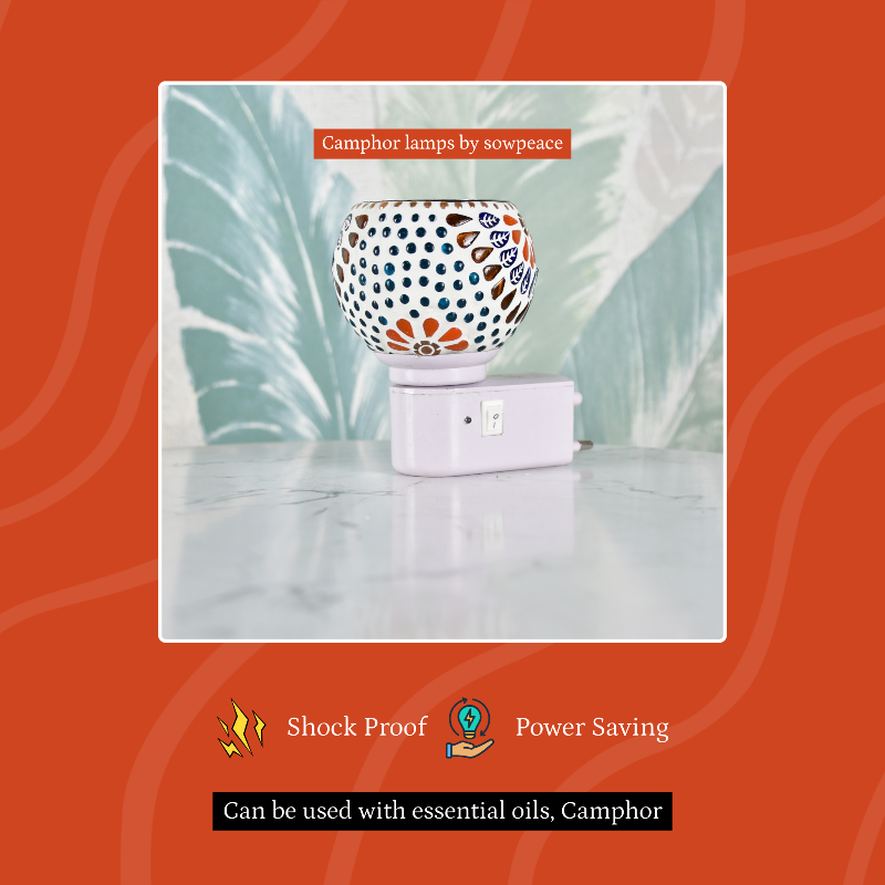 Elevate your space with this beautiful, shock-proof electric camphor lamp and essential oil diffuser. Perfect for tranquil home decor and a serene ambiance.