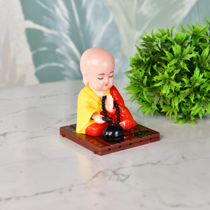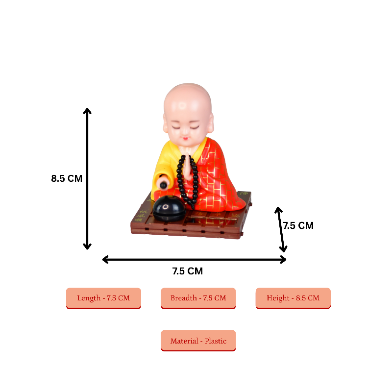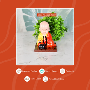 Bring peace and playfulness to your space with this solar-powered nodding Little Monk Buddha statue. Perfect for car dashboards, desks, and home altars.