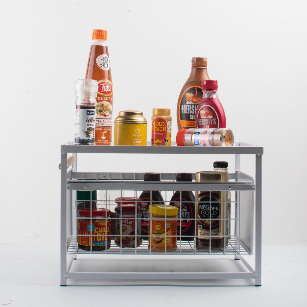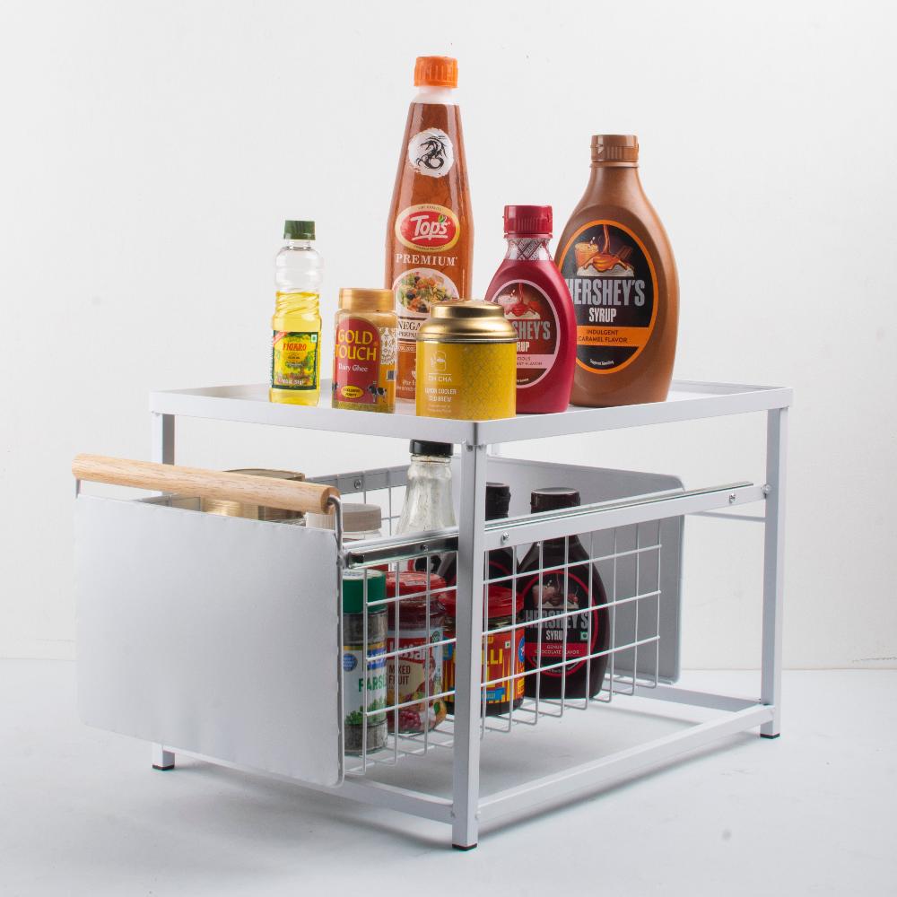 Maximize your kitchen space with the SpaceMax Pull-Out Kitchen Shelf. Crafted from premium metal, this innovative shelf effortlessly saves space by utilizing unused areas within your cabinets. Say goodbye to cluttered countertops and hello to a more organized and elegant kitchen. Transform your kitchen into a spacious and refined haven with the SpaceMax Pull-Out Kitchen Shelf. Crafted from high-quality metal, this ingenious shelf maximizes every inch of your cabinet space. Simplify your cooking routine and elevate your kitchen aesthetics with this luxurious addition.