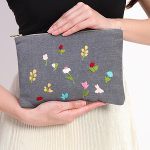 Add a touch of elegance to your accessories with this beautifully crafted floral embroidered fabric pouch. Made from high-quality, soft grey fabric, this pouch features delicate hand-stitched floral embroidery in vibrant colors , giving it a charming and artistic appeal. Whether you're looking for a stylish travel pouch, an elegant makeup bag, or a unique gift, this embroidered pouch is the perfect blend of fashion and functionality.