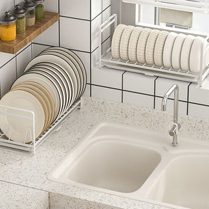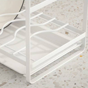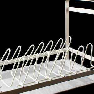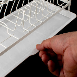 Introducing the StackFlow Modular Dish Rack - the perfect solution for organized dish drying! Crafted from sturdy metal, this rack features a convenient PVC tray for efficient water drainage. Includes 1 rack and 1 tray. Say goodbye to cluttered countertops with StackFlow!