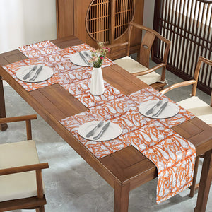 Elevate your dining experience with this sophisticated yet timeless table runner and placemat set. Featuring an exquisite earthy orange and white botanical design, this set seamlessly blends rustic warmth with refined aesthetics. Crafted for both casual and formal dining settings, this piece adds a refreshing touch of nature-inspired beauty to your table. Transform your dining table with this graceful and inviting table runner set that celebrates the charm of nature!