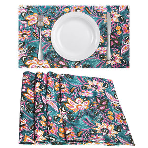 Transform your dining area with this stunning floral-printed table runner and placemat set, crafted to add a bold and lively aesthetic to any table. With a rich blend of tropical florals and intricate botanical designs, this set enhances your space with warmth, energy, and a touch of artistic charm. A lush and vibrant pattern that brings life to your dining space. Whether youâre hosting a grand dinner or looking to elevate your everyday dining experience, this floral-inspired table runner set makes the perfect statement piece!Â