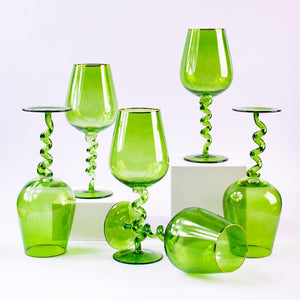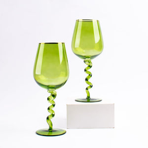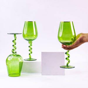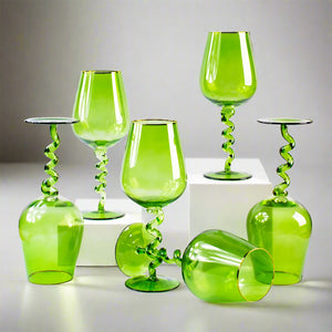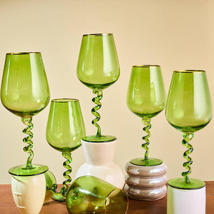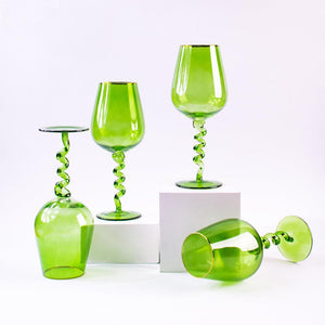 Indulge in the luxurious taste of the Twist of Eden Elegant Wine Glass. Adorned with a delicate gold rim and a spiral stem, this glass embodies sophistication and elegance. Its generous size allows for a perfect pour, enhancing your sipping experience. Elevate your evening with these exclusive glasses.
