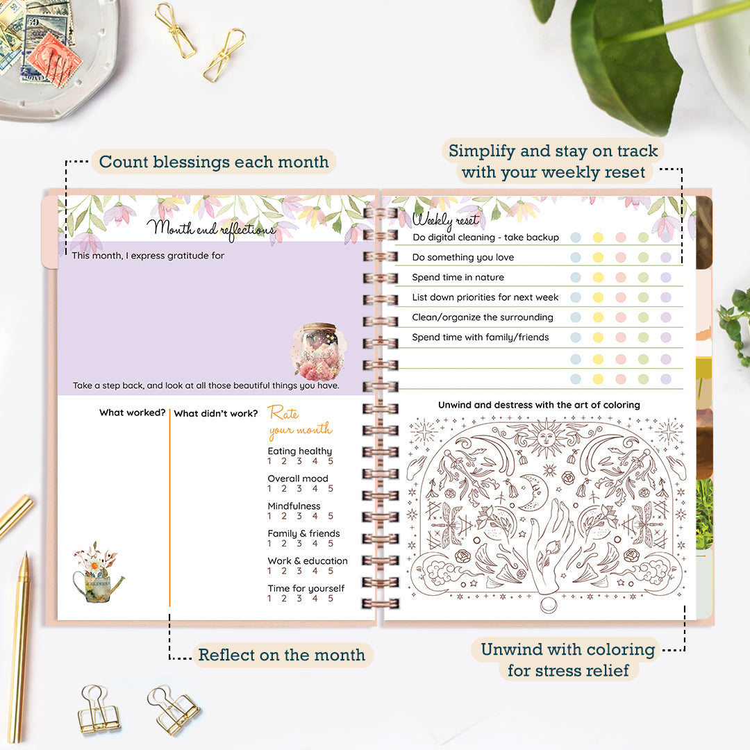 Our Undated Planner collection is your ultimate canvas for unlocking your inner main character. These planners are your trusty buddies, and each page is a blank slate waiting for your journey and goals. No more waiting around for that "perfect" date – the spotlight is always yours to take. With themes and inspiration that groove with your ever-evolving story, it's time to grab that pen and start scripting your narrative, your way, every single day. Let's make your story awesome!