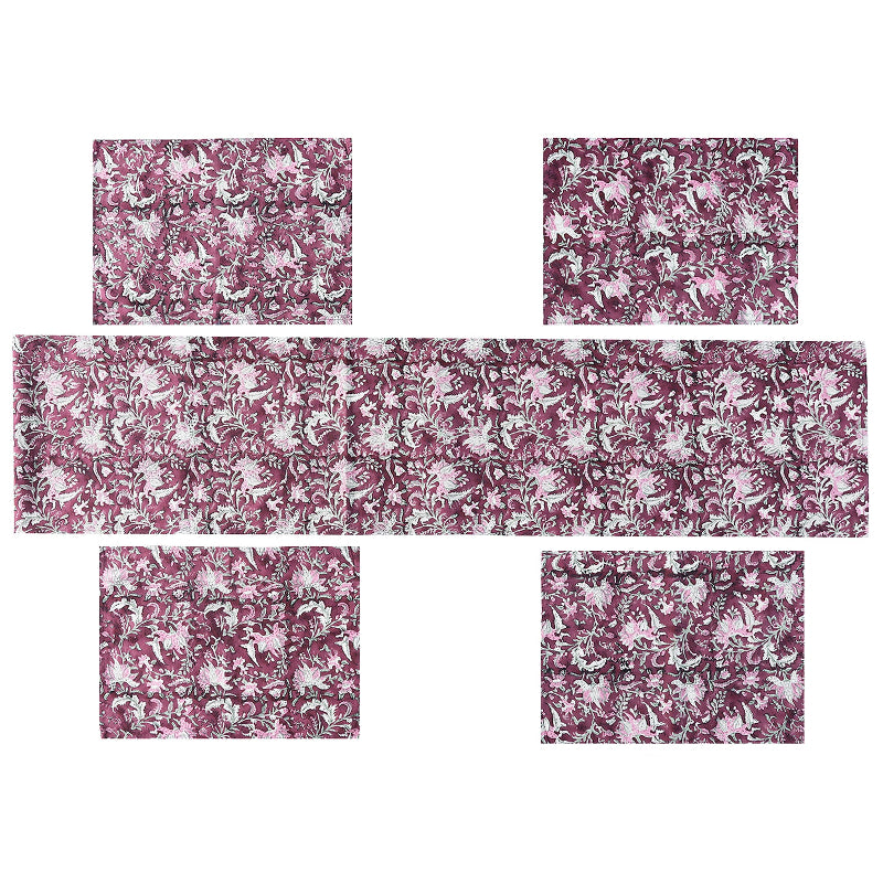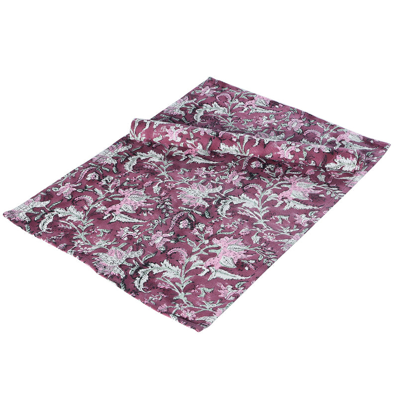 Add warmth and sophistication to your dining space with this burgundy floral table runner and placemat set. Featuring a striking floral print in shades of burgundy and white, this set is designed to bring a refined elegance to your meals, whether for everyday dining or special occasions. Perfect for festive gatherings, casual dining, or enhancing your home decor. This luxurious handcrafted table runner set is perfect for creating an inviting and stylish dining experience.