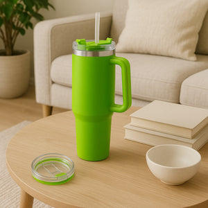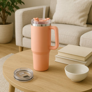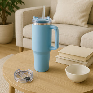 Voyage XL Heat Insulated Travel Coffee Mug is crafted for you to sip on hot tea, hot coffee, fruit juice, smoothies, or other drinks on the go. This insulated sipper with a handle and straw for convenience is ideal for everyday use and comfortable to hold. The straw will allow you to drink your favourite beverage conveniently on the go. Sip on hot beverages like milk, coffee, tea, or ice-cold drinks such as iced tea, cold coffee, soft drinks, cocktails or mocktails in this well-designed portable glass drinking cup. This glass drinking cup is multi-functional, easy to clean and durable.