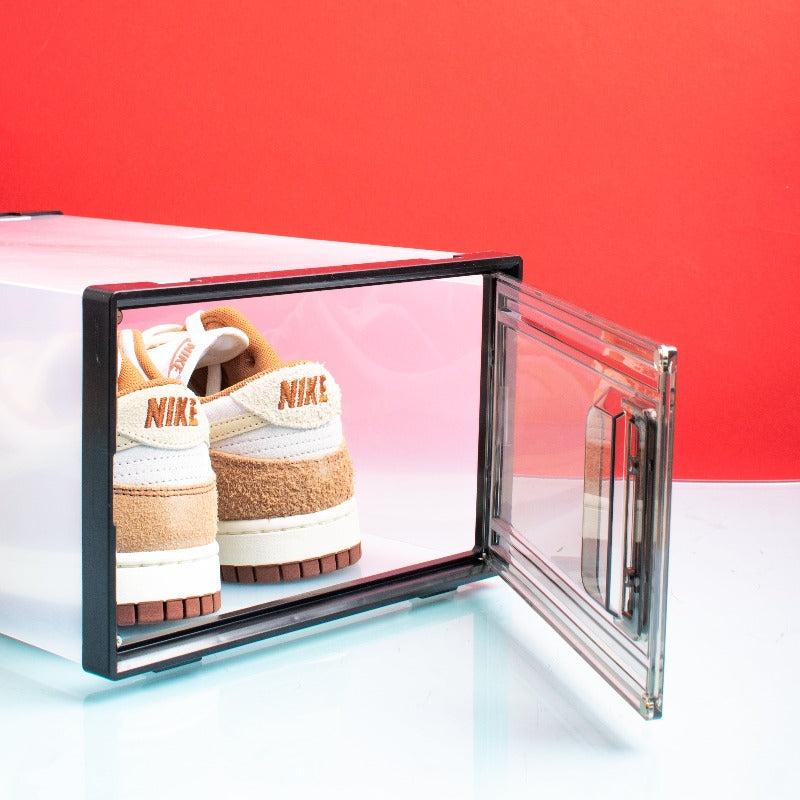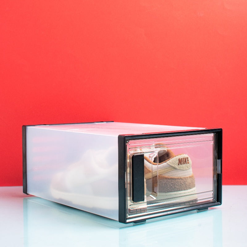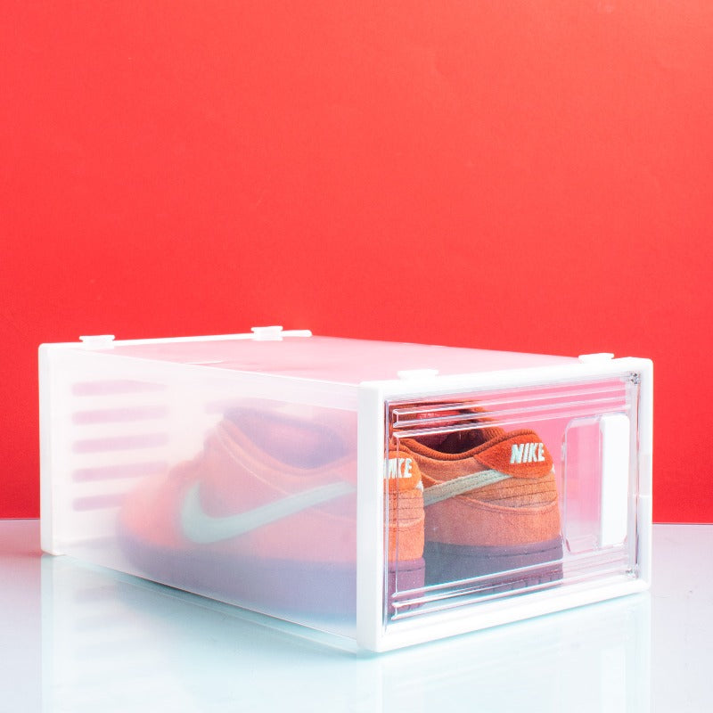 Fall in love with the Whimsy Walkers Portable Sneaker Crate! Enjoy the convenience and protection this stackable heavy-duty crate provides. Designed with aesthetics and flex in mind, it's a perfect fit for any sneaker enthusiast. And its durable design gives you secure storage--without the hassle of shoe clutter! With the interlocking design, it's simple to assemble. And you can stack the crates however you choose and make room for more. Get the style and security you deserve with the ultimate sneaker accessory! Experience the convenience of Whimsy Walkers.