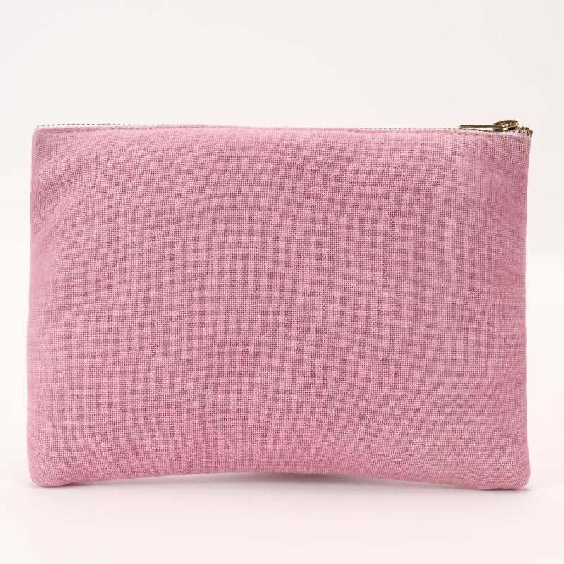 This charming pink pouch exudes a cheerful vibe with its delightful floral embroidery in white, yellow, and red hues. The vibrant blooms, crafted with intricate precision, bring a lively touch of nature to the design. Perfectly sized for storing your daily essentials, it combines functionality with a playful yet elegant aesthetic. Its durable fabric and secure zipper make it stylish and reliable, ideal for those who appreciate beauty in the little things.
